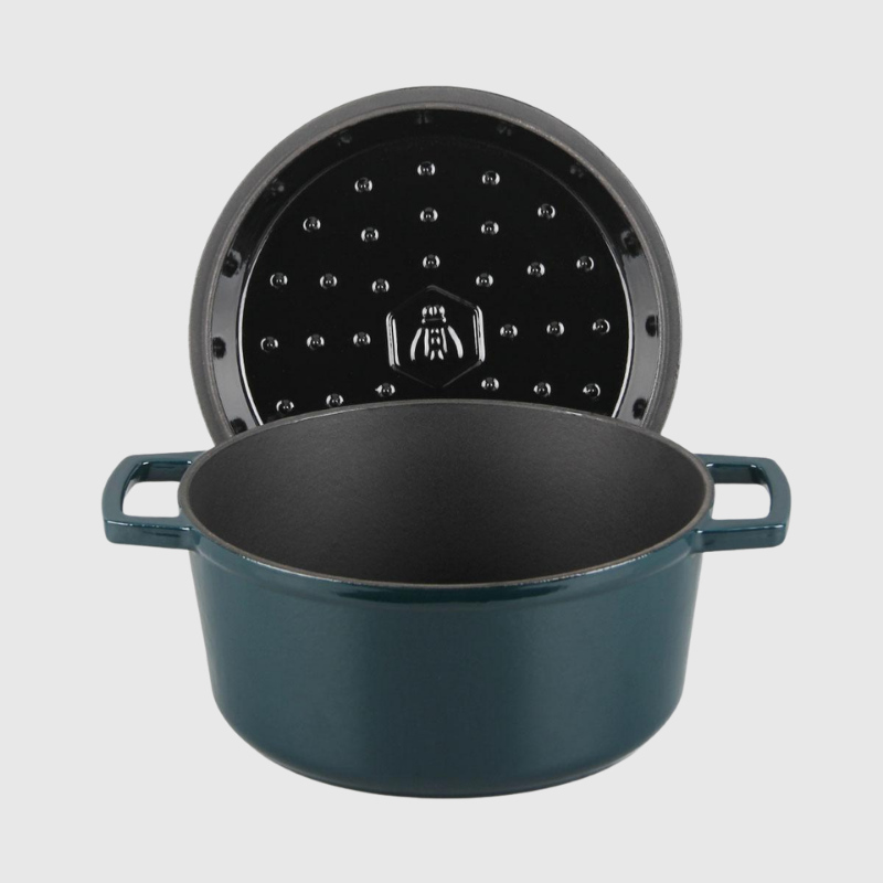Son intérieur en émail noir mat 3 couches résiste aux températures élevées, vous permettant de saisir vos aliments à la perfection avant de les laisser mijoter. Le couvercle équipé de picots assure un arrosage continu, pour des plats encore plus tendres et savoureux à chaque utilisation.